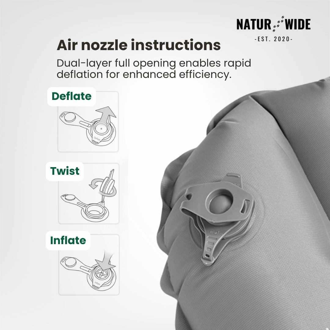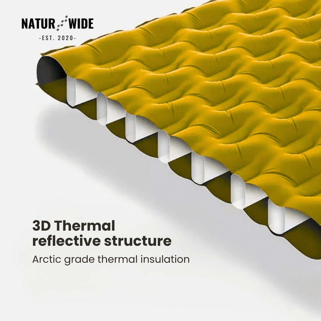 The NaturWide 7.6R Air Pad redefines outdoor sleeping comfort. Engineered with high-density 20D nylon and TPU lamination, this pad is built to withstand rugged terrain while keeping you perfectly warm and supported all year round.