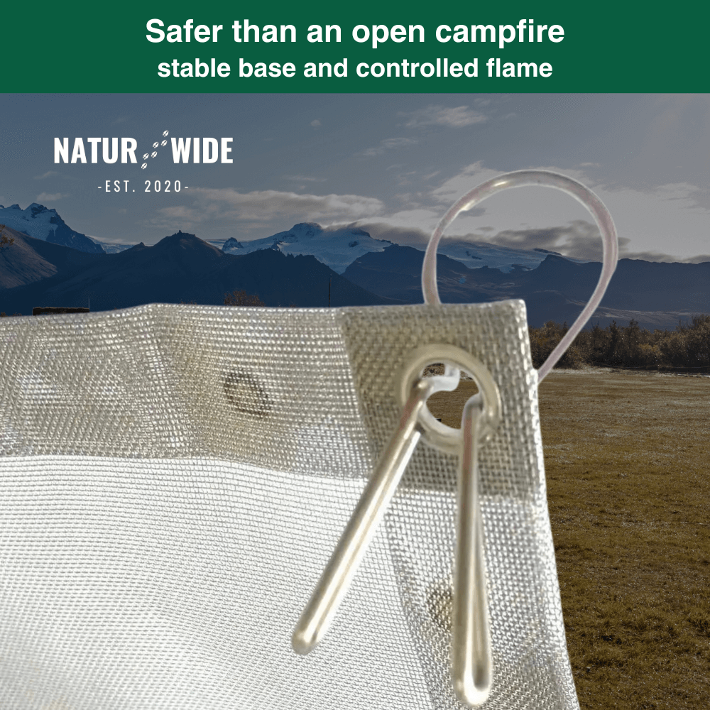 The mesh is made of sturdy stainless steel and easily holds small logs and charcoal briquettes for a safe campfire.