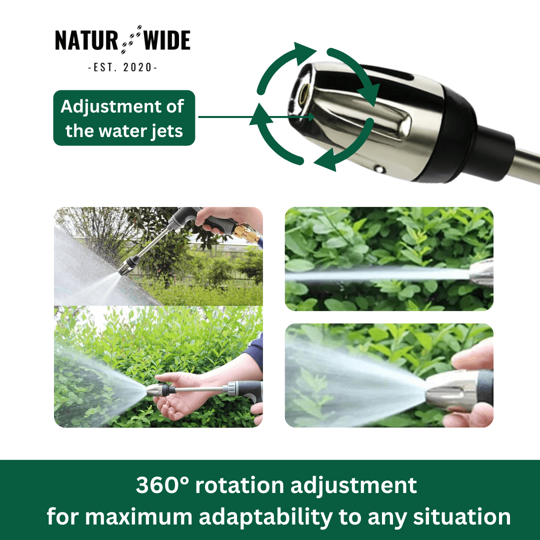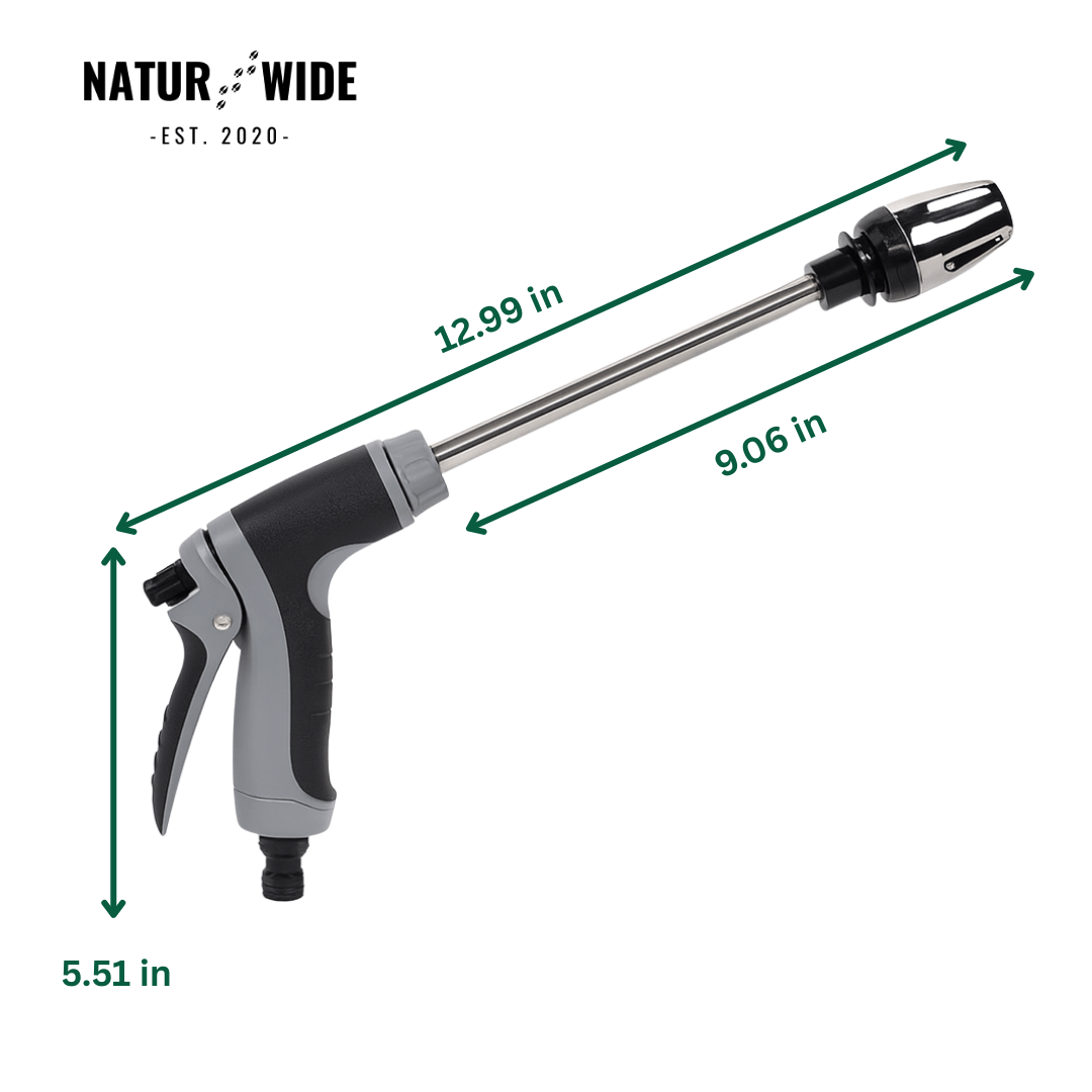 Crafted from premium rust-resistant aluminum with a reinforced stainless steel nozzle for maximum durability. The non-slip handle ensures a firm grip and easy use – no electricity or complicated setup required.