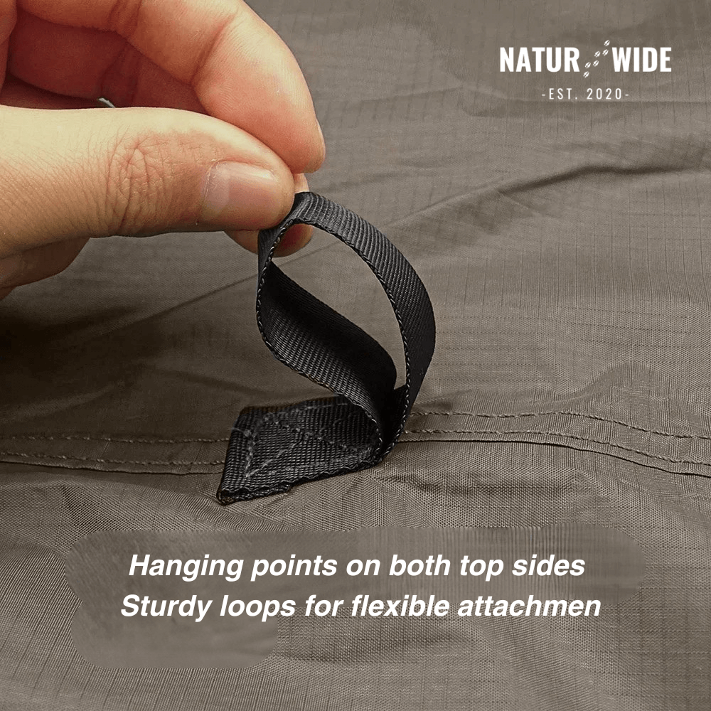 The 19 strong loops offer multiple setup options – use it as a tarp, sunshade, emergency shelter, or rain cover.